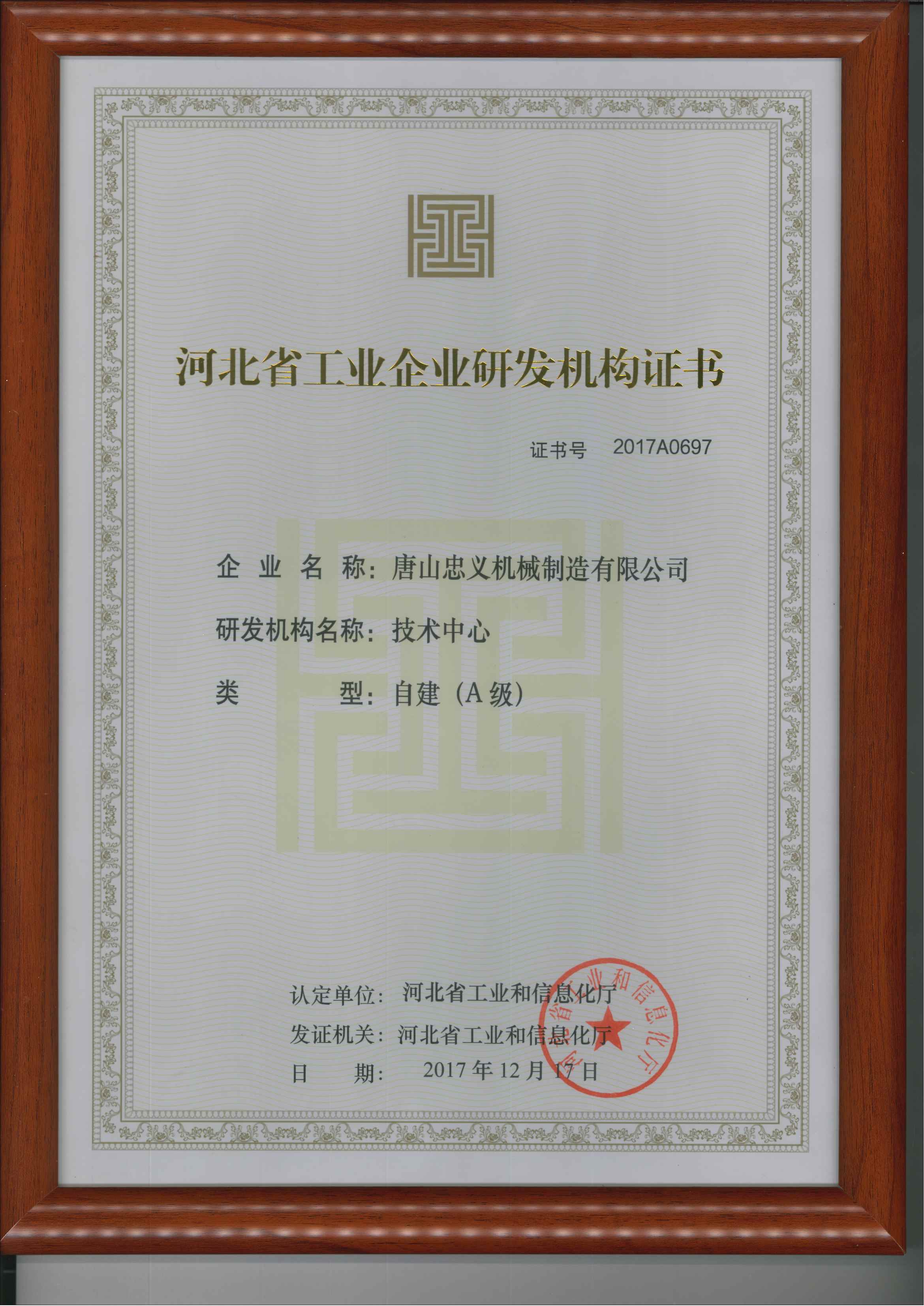 河北省工業(yè)企業(yè)研發(fā)機構(gòu)證書彩色原版 發(fā)布時間:2025-08-18 點擊: 422 上一條: 河北省專精特新中小企業(yè) 下一條: 河北省科技型中小企業(yè)證書(新)